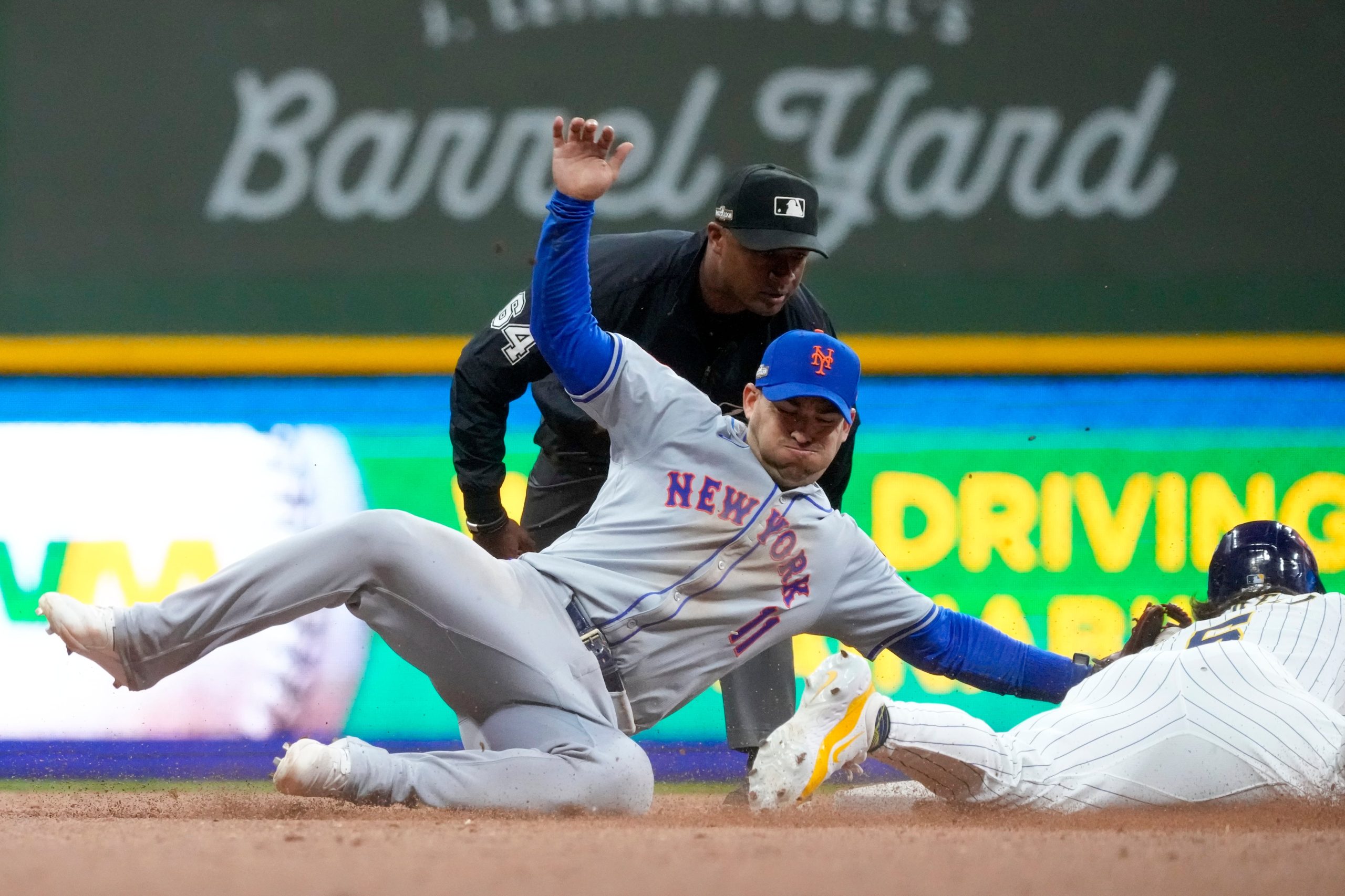 O Mets assumiu a liderança no segundo turno depois que um arremessador dos Brewers cometeu novamente um erro crítico na primeira base.