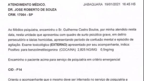 De acordo com Marçal, o laudo médico indicaria que Boulos foi internado com sintomas de surto psicótico, incluindo ideias de homicídio, e que exames realizados durante o atendimento confirmaram a presença de cocaína em seu organismo.