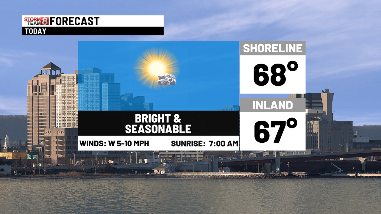 Você teve a chance de ver a aurora boreal?? Eles estavam absolutamente deslumbrantes sobre a Nova Inglaterra! É um começo frio com temperaturas na casa dos 30 e 40. Veremos muito sol hoje, com máximas recuperando em meados e acima dos 60 anos. O início do fim de semana parece ótimo – o sábado será claro e ameno, com máximas na casa dos 70 graus. Mais nuvens são esperadas no domingo com possibilidade de algumas chuvas. Os máximos cairão em meados dos anos 50 para os 60 anos.