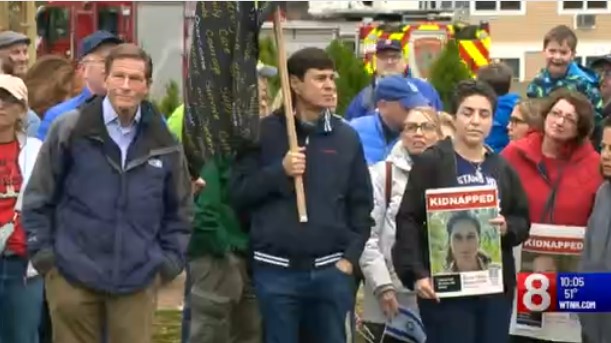 No domingo, dezenas de pessoas levaram suas orações às ruas de West Hartford, ao mesmo tempo que pediam a libertação dos reféns.