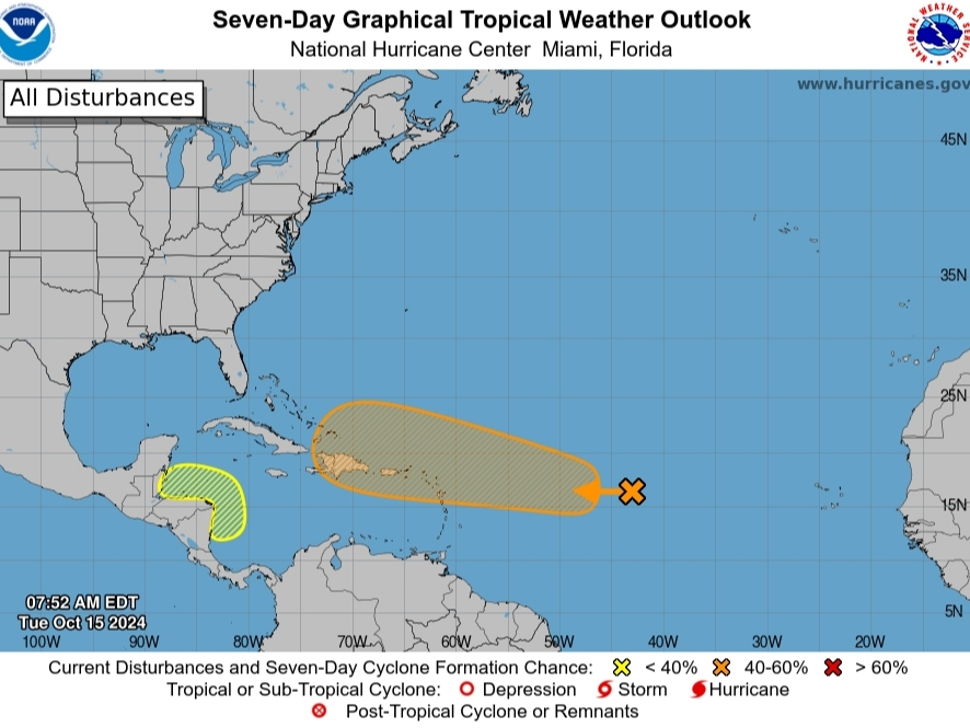 À medida que se desloca para oeste, “as condições ambientais poderão tornar-se mais propícias ao desenvolvimento gradual entre meados e o final desta semana”, disseram os meteorologistas do NHC. “Uma depressão tropical pode formar-se à medida que o sistema começa a mover-se para oeste-noroeste e aproxima-se ou move-se perto das Ilhas Leeward no final desta semana.”