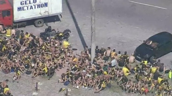 Ainda segundo a PM, a briga generalizada, que terminou com depredações, saques e roubos, inclusive com um ônibus e uma motos queimados, começou após um uruguaio roubar um celular em um quiosque. O aparelho foi recuperado e o torcedor encaminhado à delegacia.