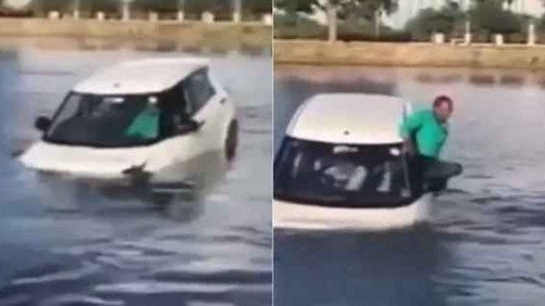 Um carro conduzido por um aluno de autoescola caiu dentro de um lago, no distrito de Jangaon, na Índia, a cerca de 1,5 mil quilômetros da capital Nova Deli. O motorista e o passageiro que estavam no veículo foram resgatados em segurança.