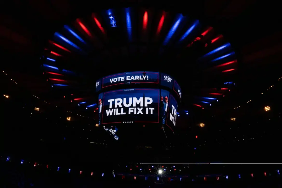 O candidato republicano à presidência dos Estados Unidos, Donald Trump, realizou neste domingo um comício multitudinário no Madison Square Garden, em Nova York, um dos principais eventos de sua campanha para retornar à Casa Branca.