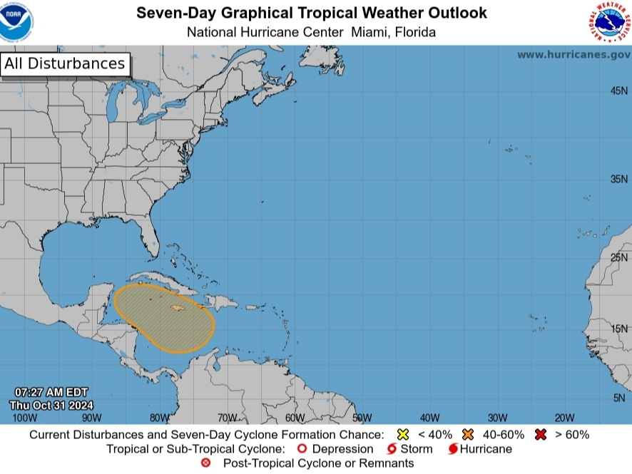 FLÓRIDA – As chances de uma ampla área de baixa pressão se transformar na próxima ameaça tropical vinda do Mar do Caribe aumentaram na manhã de quinta-feira, de acordo com o Centro Nacional de Furacões.