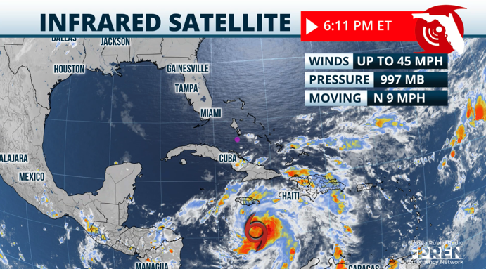 A tempestade tropical está se movendo para o norte a 9 mph e continuará a se mover em direção ao norte-noroeste. Ele viaja sobre águas muito quentes e o cisalhamento do vento deverá ser baixo até quarta-feira, à medida que se aproxima do oeste de Cuba.