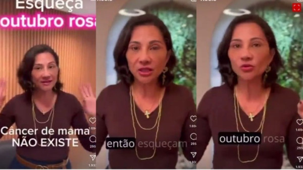 “Por isso venho falar para vocês que câncer de mama não existe então, esqueçam o outubro rosa, esqueçam mamografia, a mamografia vai causar inflamações nas mamas. Por que eu falo que câncer de mama não existe? Porque simplesmente o que existe é uma inflamação crônica nas mamas que pode ser inflamação da tireoide, do rim, do fígado, em qualquer lugar é cálcio nas mamas”, declarou ela.