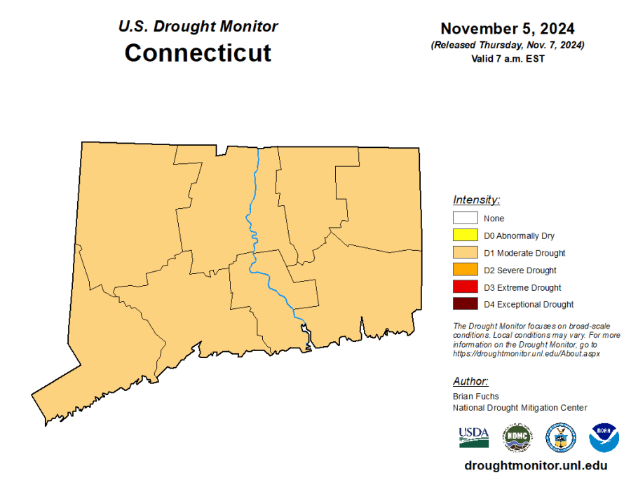 O Monitor de Secas dos EUA atualizou o status de Connecticut na quinta-feira.