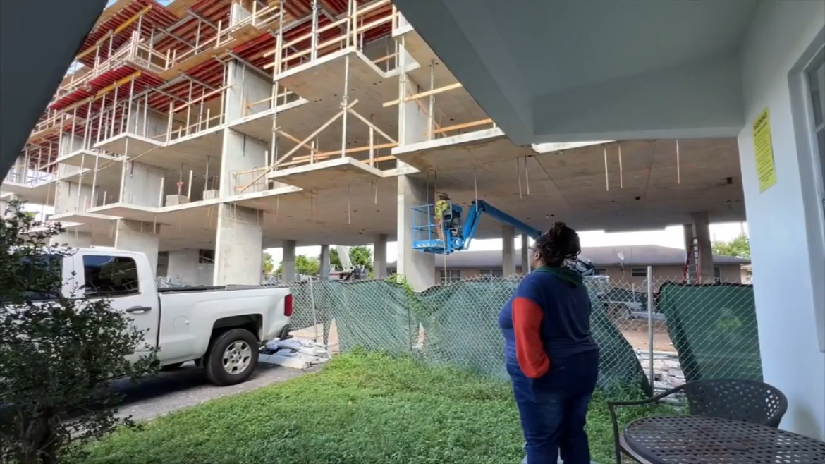O canteiro de obras de quatro andares se estende da Pierce Street até Filmore, em Hollywood.