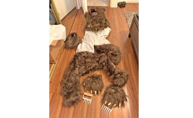 Depois de executar um mandado de busca, os detetives encontraram a fantasia de urso na casa dos suspeitos, disse o departamento.