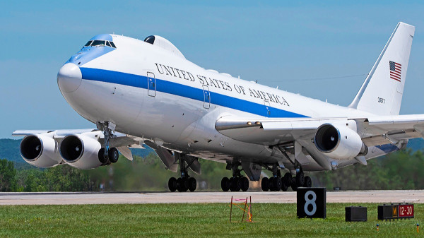 Batizada de E-4B Nightwatch, a aeronave da Força Aérea Americana (USAF) é um posto móvel de comando, normalmente utilizado pelo Secretário de Defesa em deslocamentos, mas que operaria em sua plena capacidade apenas quando os EUA fossem atacados diretamente, num cenário mais provável de Guerra Nuclear, por isto o apelido de “Avião do Dia do Juízo Final”.