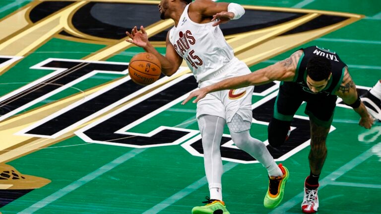 Uma colisão com Jayson Tatum deixou a guarda dos Cavaliers Donovan Mitchell sangrando pela boca nos últimos segundos da vitória do Celtics por 120-117 sobre o Cleveland na noite de terça-feira.