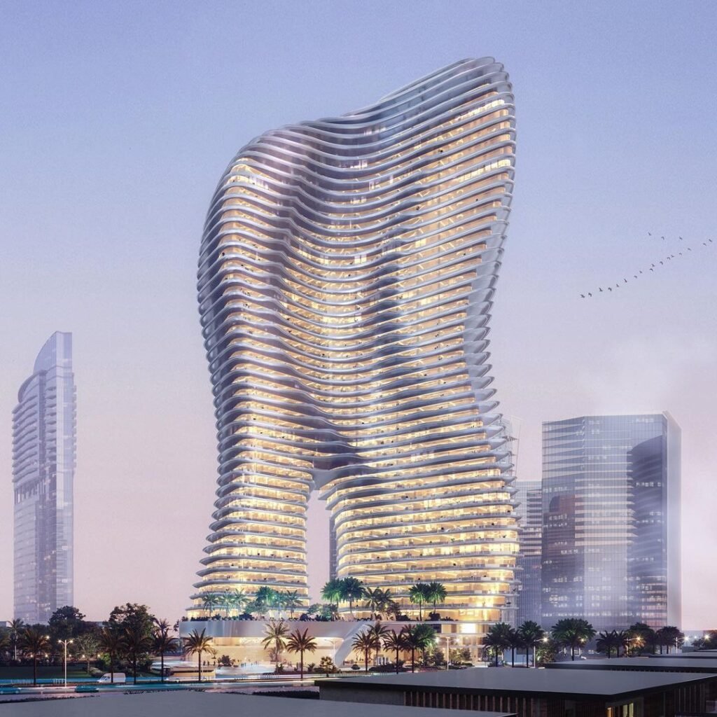 Os apartamentos do condomínio têm preços iniciais de US$ 14,2 milhões (R$ 81,8 milhões), e as coberturas, chamadas de “Sky Mansion Penthouses”, são personalizadas e incluem piscinas privativas e spa.