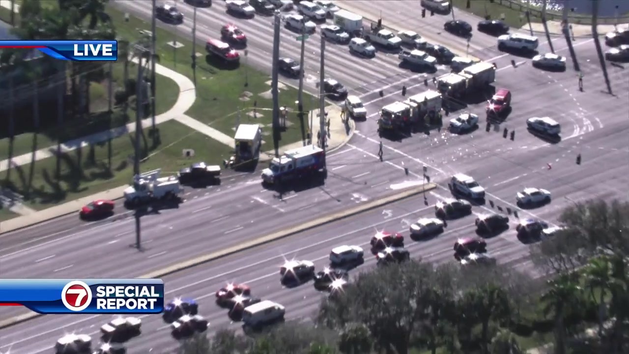 As equipes de energia e luz da Florida também chegaram ao local porque a luz do cruzamento estava apagada.