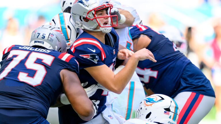 Os Patriotas desistiu de 24 pontos no segundo trimestre de uma derrota por 34-15 para os Dolphins no domingoe Jacobs lutou desde o início. Ele cometeu três pênaltis caros no primeiro tempo – uma largada falsa e duas retenções – e deu pouca resistência a Chop Robinson do Miami em seu caminho para o quarterback (Robinson terminou com 1,5 sacks e três rebatidas de quarterback).