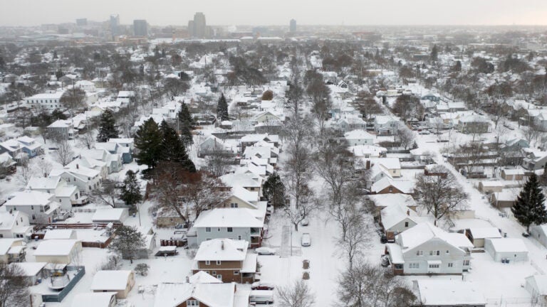 A neve cobre casas e ruas perto do Zoológico John Ball em Grand Rapids, Michigan, quinta-feira, 5 de dezembro de 2024. Neil Blake/The Grand Rapids Press via AP