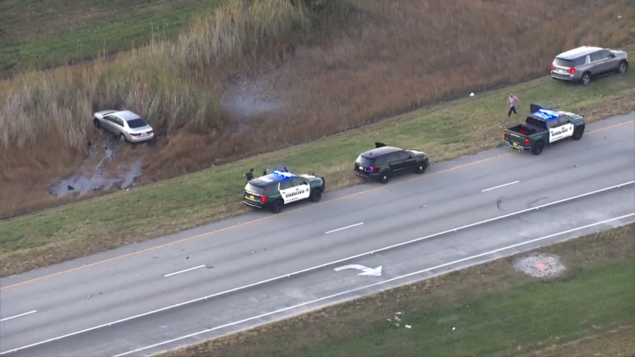 Equipes de emergência chegaram ao local perto de 21111 SW 16th St. e confirmaram que o motorista conseguiu sair do carro com segurança.