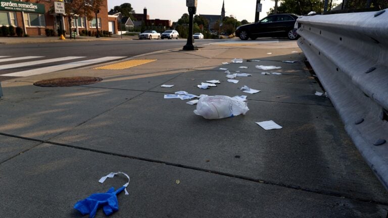 Materiais EMS deixados na calçada após um tiroteio em 12 de setembro perto de 701 Washington St., em Newton. David L Ryan/Equipe do Boston Globe, Arquivo