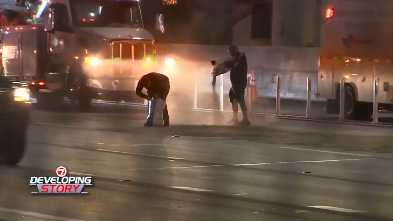Galões de combustível foram derramados na via expressa Palmetto, perto da West Okeechobee Road, causando grandes atrasos na área.