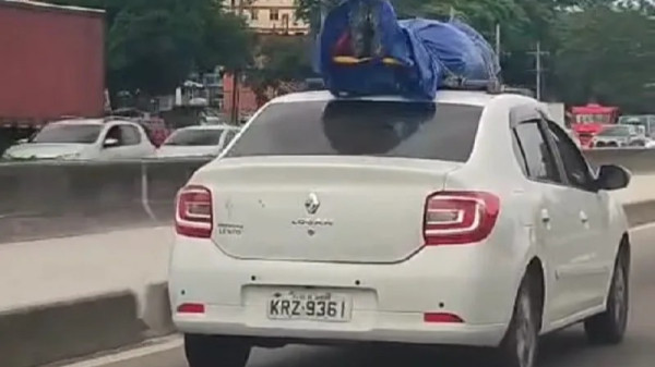 Uma cena inusitada chamou atenção na Avenida Brasil, no Rio de Janeiro, e ganhou as redes sociais na tarde desta terça-feira (10). Um vídeo compartilhado por um motorista mostra um carro trafegando com algo que aparenta ser um “corpo” na parte de cima do veículo.