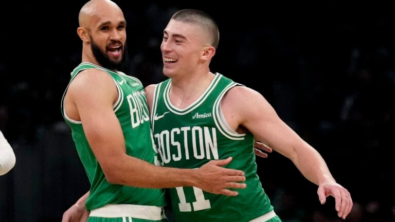 Derrick White e Payton Pritchard têm sido pontos focais para o sucesso do Celtics na quadra de defesa nesta temporada. (Foto AP/Charles Krupa)