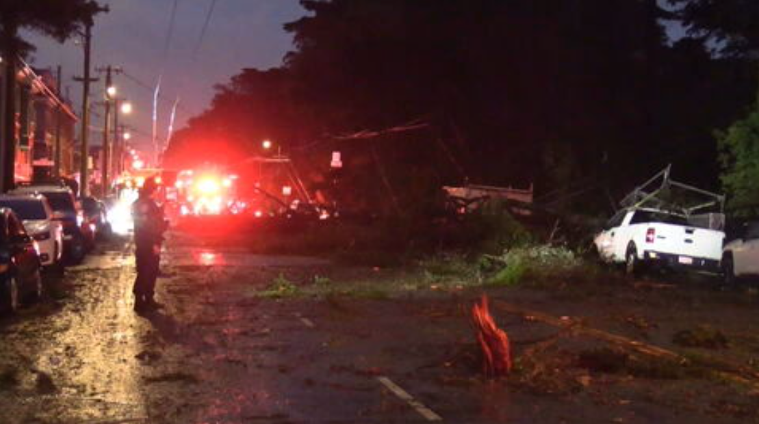 Embora tenha havido rotação no radar no momento para acionar o alerta, os danos não sugerem a aterrissagem de um tornado. Os meteorologistas do Serviço Meteorológico Nacional documentam a gravidade e a direção em que ocorrem os danos para fazer essa determinação.