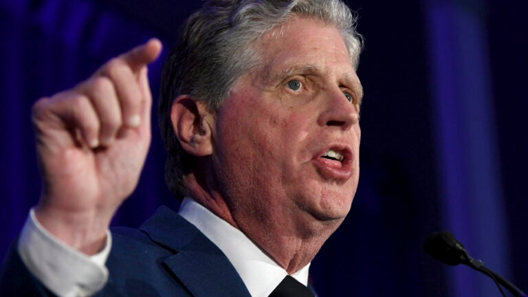 ARQUIVO – O governador de Rhode Island, Daniel McKee, faz seu discurso de vitória durante uma reunião noturna de candidatos e apoiadores democratas de Rhode Island, em 8 de novembro de 2022, em Providence. AP Foto/Mark Stockwell, arquivo