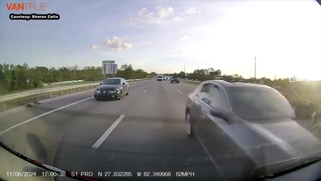 O vídeo da Dashcam mostra um carro aparecendo atrás deles na rodovia. Pareceu atingir o carro de Celias na faixa do meio e outro carro na faixa da esquerda.