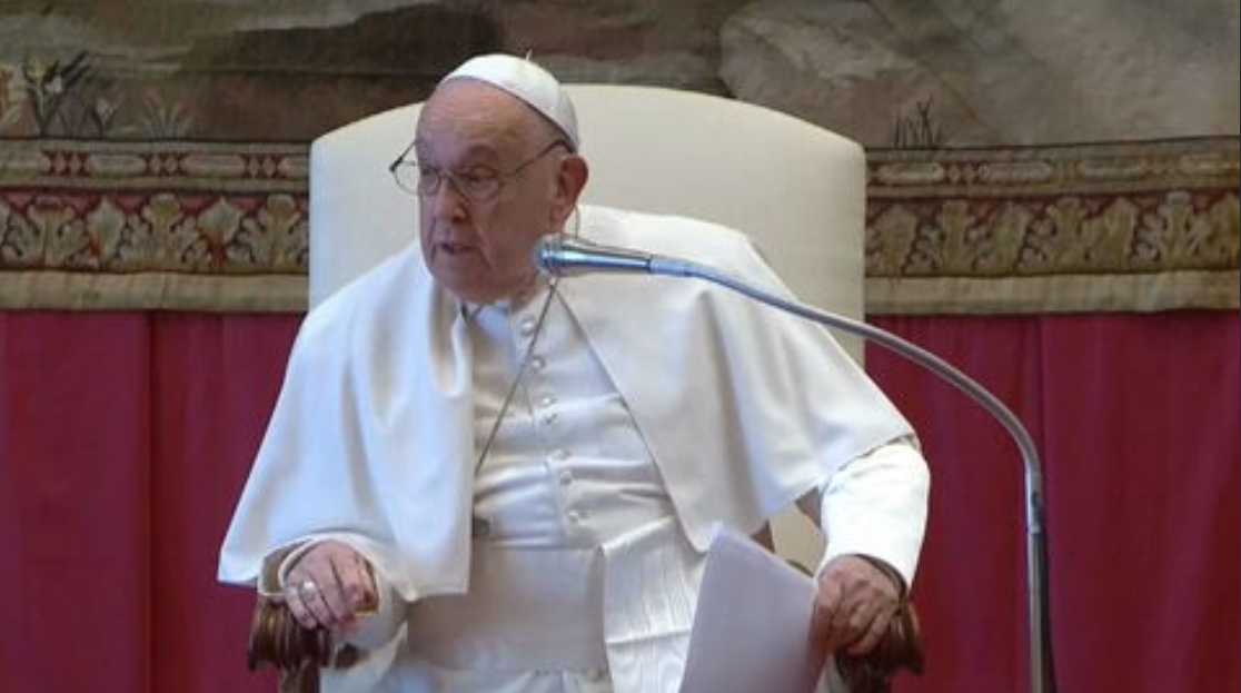 Francisco abriu o seu discurso de sábado lembrando a devastação da guerra em Gaza, onde disse que até o seu patriarca não pôde entrar devido aos bombardeamentos israelitas.
