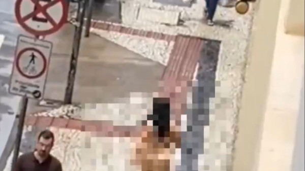 Uma mulher foi flagrada na manhã de hoje, nua, no cruzamento mais movimentado de Juiz de Fora. Ela usava apenas chinelos, que foram abandonados após atravessar a Rio Branco.