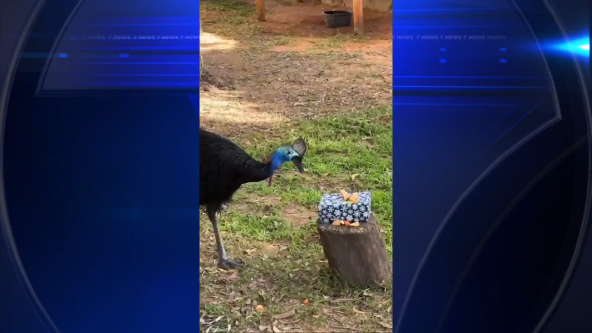 Gannicus, o casuar, está sentindo a alegria do feriado.