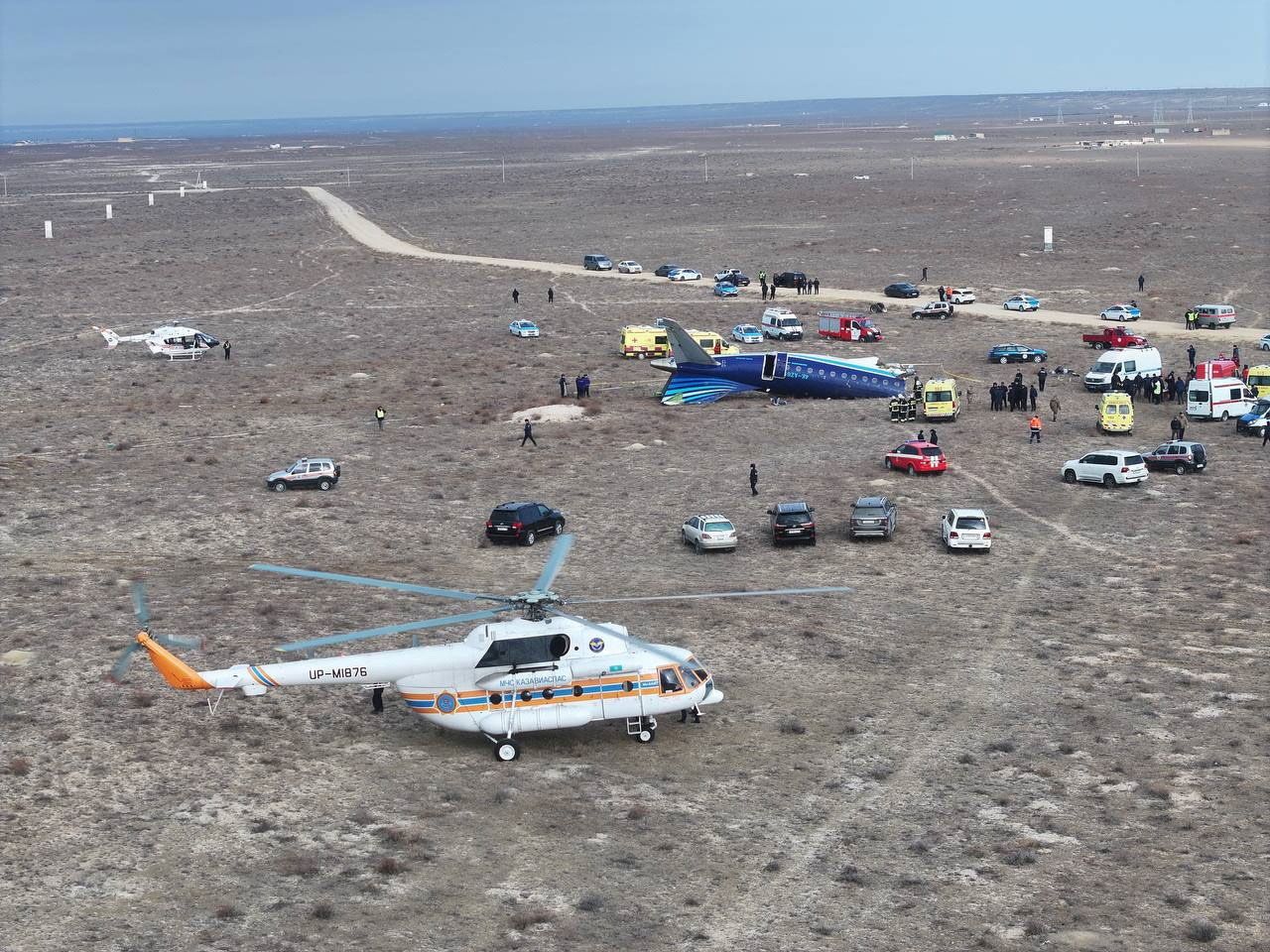 O Ministério de Situações de Emergência do Cazaquistão disse que suas equipes encontraram a aeronave em chamas ao chegar ao local, com unidades de resgate extinguindo o fogo na chegada.