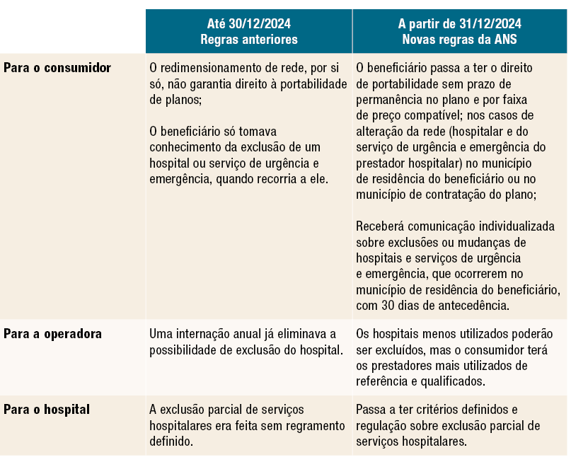 Entre as principais mudanças, destaca-se a ampliação das regras de portabilidade, que agora permitem que beneficiários insatisfeitos com a exclusão de um hospital ou do serviço de urgência e emergência de sua rede possam realizar a portabilidade sem a necessidade de cumprir os prazos mínimos de permanência no plano, que variam de 1 a 3 anos. Além disso, os beneficiários poderão mudar de plano mesmo que o novo não pertença à mesma faixa de preço do plano original, como era exigido em outras situações de portabilidade.