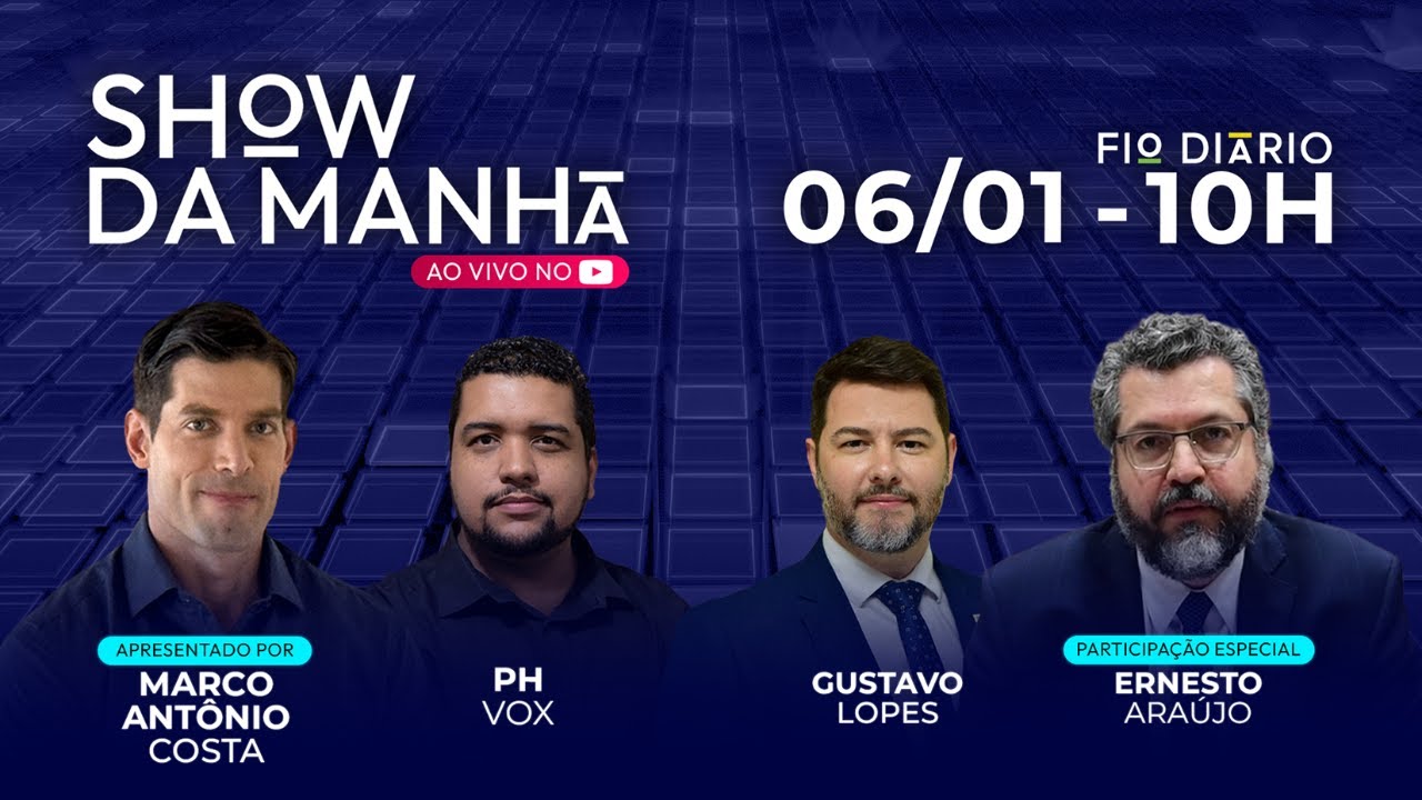 Apresentado por Marco Antônio Costa. Convidados de hoje: PHVox e Gustavo Lopes. Participação especial: Ernesto Araújo. O Show da Manhã vai ao ar de segunda a sexta, das 10h às 12h.