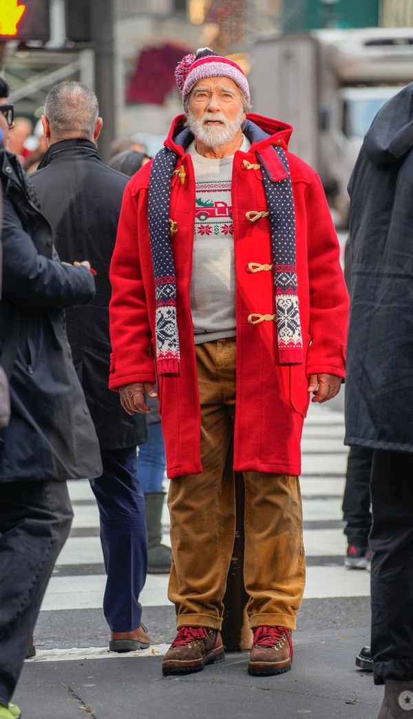 De exterminador do futuro a bom velhinho! Arnold Schwarzenegger, de 77 anos de idade, foi fotografado, na tarde de terça-feira (17), bem diferente do que os fãs estão acostumados por conta da caracterização que o transformou em ninguém menos que Papai Noel. E nada se algo relacionado à chegada do Natal, mas sim do novo filme do astro.