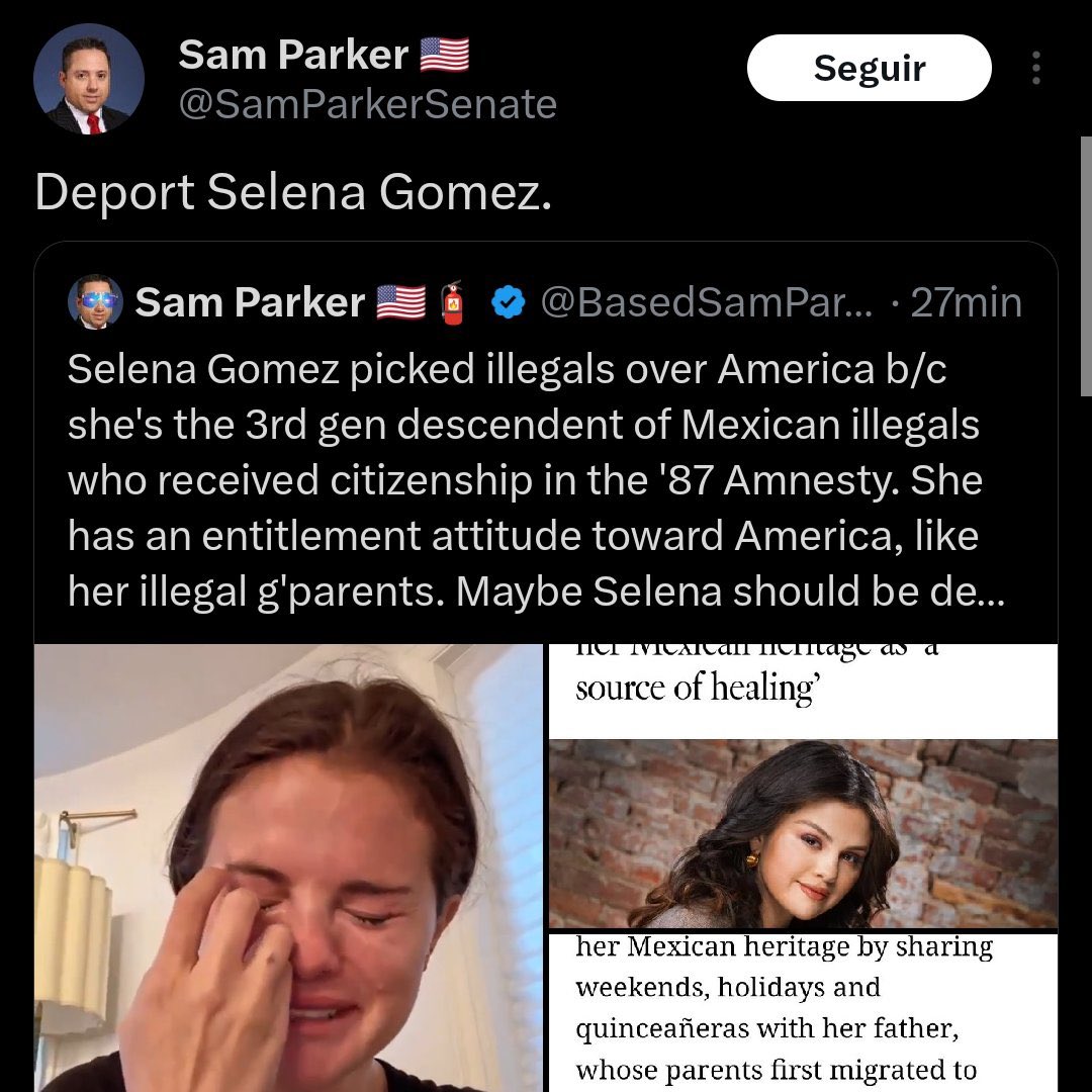 Na postagem, o político acusa Selena de ter “escolhido” imigrantes à cidadãos americanos pois a atriz é descendente de mexicanos que foram concedidos anistia em 1987.