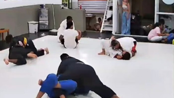 No vídeo ao qual o Metrópoles teve acesso, é possível ver a mulher falando com os “jiu-jiteiros” na porta da academia. Imediatamente, todos os alunos que estavam treinando naquele momento se levantam e vão atrás do suspeito.
