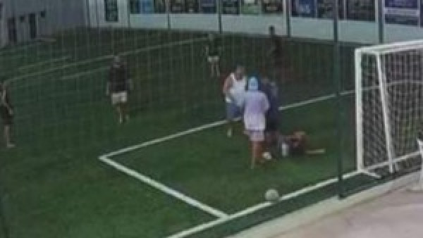 Um homem entrou, no último sábado (15), em uma quadra de futebol e deu um chute em um garoto de 10 anos em Piraúba, Minas Gerais, enquanto acontecia uma partida entre as crianças. Imagens de uma câmera de monitoramento do local registraram a agressão.