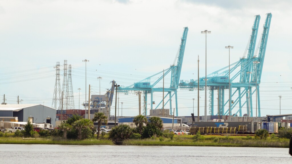 Seis linhas de alta tensão que vão e para Blount Island atravessaram o rio a uma altura de cerca de 175 pés por décadas. Mas em meados de 2022, os funcionários do porto disseram que podem não ser altos o suficiente para limpar o topo dos navios mais novos e maiores que usariam o Jaxport.