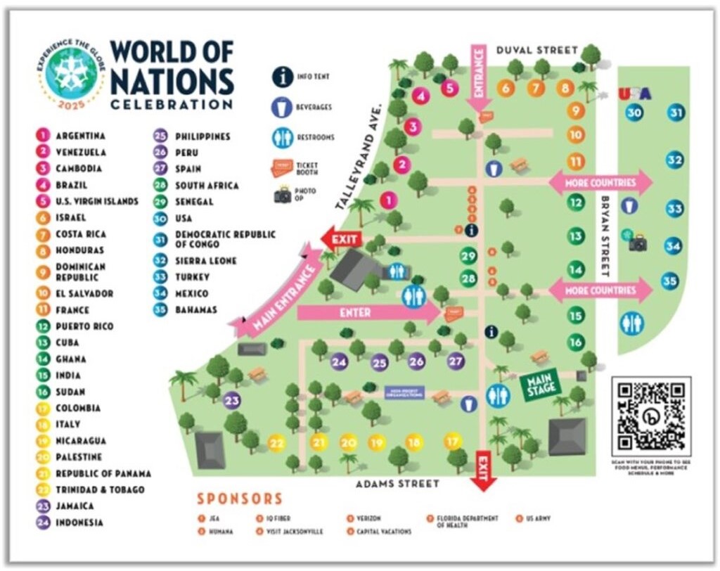 Os ingressos custam US $ 13 mais impostos (de 4 a 17 anos) e US $ 15 mais impostos (com mais de 18 anos) por meio de cartões de crédito/débito e apenas toque a pagar. Ou compre -os online em JAXWORLDOFNATIONS.COM. Os estacionamentos públicos custam de US $ 10 a US $ 13. Partes da Talleyrand Avenue, Bryan Street e Duval Street serão fechadas no ou perto do evento durante todo o fim de semana.