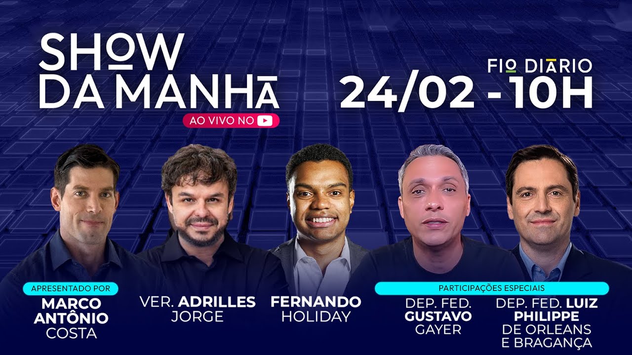 Apresentado por Marco Antônio Costa. Convidados: Ver. Adrilles Jorge e Fernando Holiday. Participação especial: Dep. Fed. Gustavo Gayer e Dep. Fed. Luiz Philippe de Orleans e Bragança. O Show da Manhã vai ao ar de segunda a sexta, das 10h às 12h.