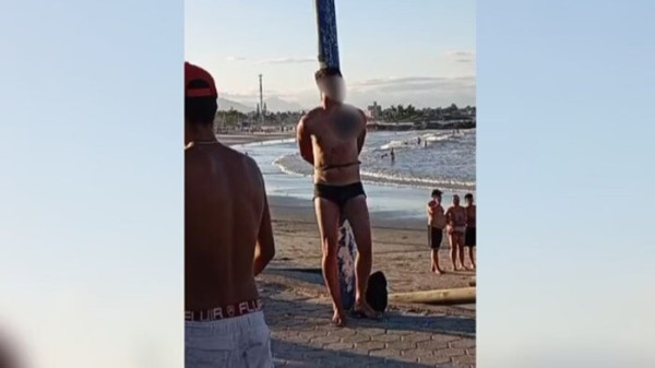 Homem é amarrado em poste e linchado ao se exibir a crianças em praia