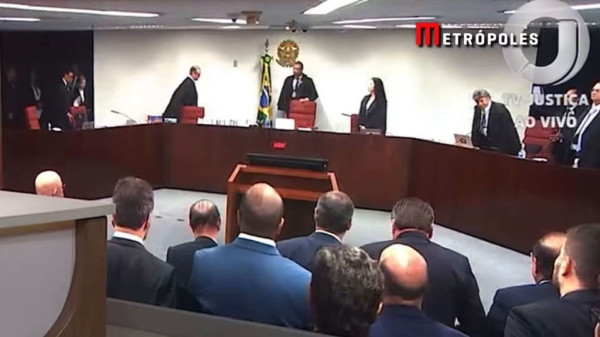 Acompanhado por advogados, ex-presidente acompanha o julgamento que pode torná-lo réu no auditório da Primeira Turma.