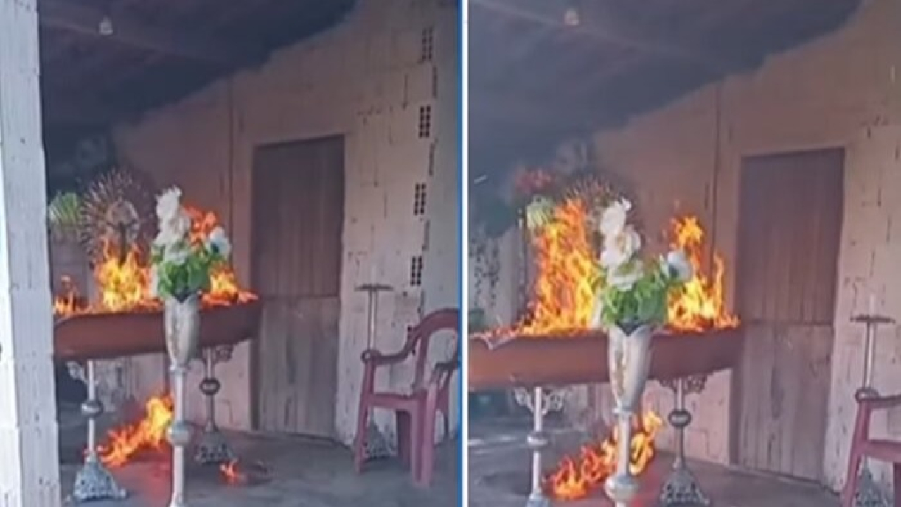 Parentes e amigos do homem morto registraram, em vídeo, o caixão em chamas.