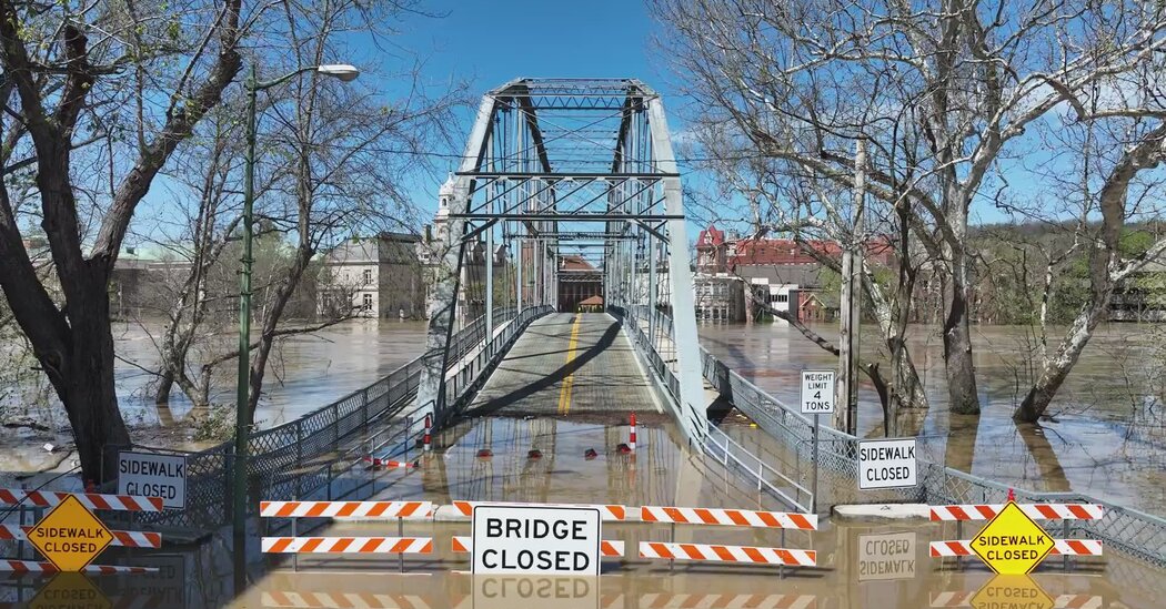Dezenas de rios do Arkansas a Indiana ficaram impressionados no domingo, colocando infraestrutura como pontes, diques, sistemas de água, esgoto e outras estruturas. Esperava -se que alguns riachos e rios não atinjam seu nível máximo até depois de vários dias. Os moradores foram resgatados em toda a região.