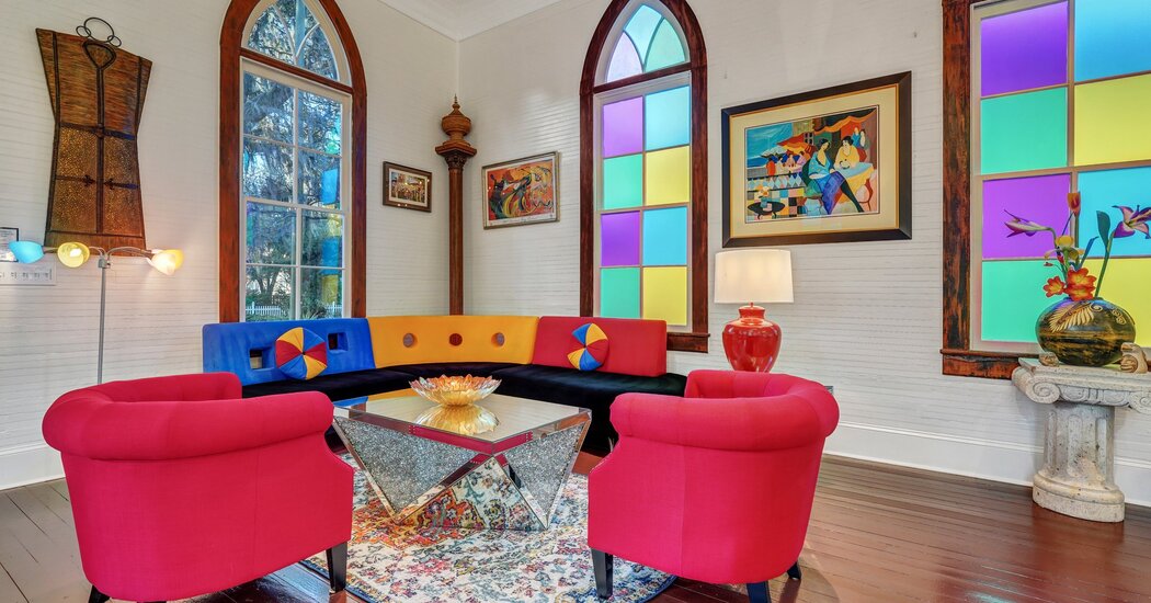 Esta transformação da casa de quatro quartos e quatro banheiros da igreja começou em 2022, com uma asa de dois andares atrás do santuário original que mantém todos os quatro quartos e banheiros. A área principal da antiga igreja permanece aberta, funcionando como um espaço vivo e de jantar, completo com vitrais originais do prédio.