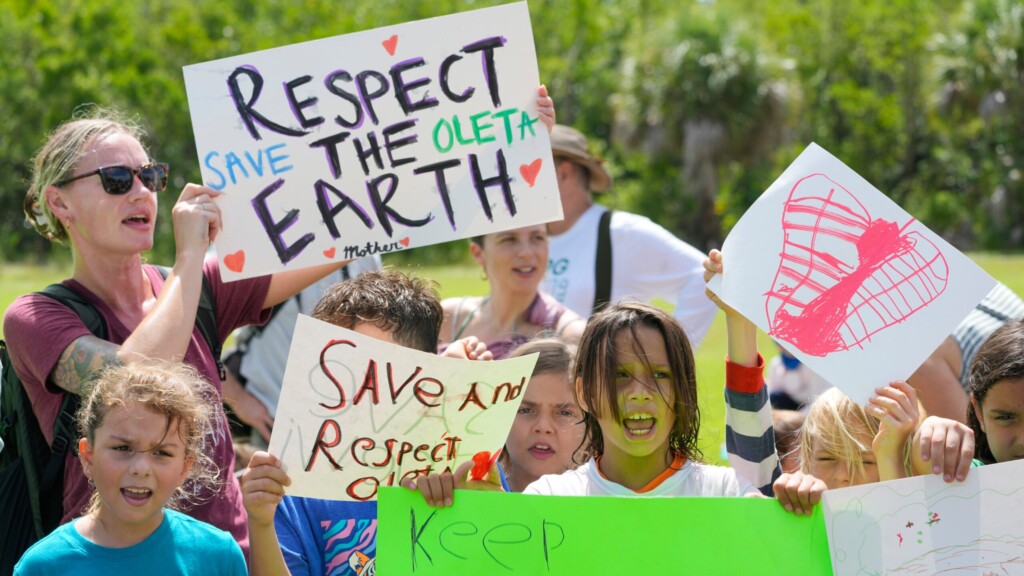 O Departamento de Proteção Ambiental do Governador Republicano apresentou os planos de desenvolvimento em agosto e agendou apenas uma única hora de audiências públicas antes de avançar os projetos. Centenas de pessoas participou de protestos Nos parques e em Tallahassee, muitos carregavam placas com slogans como “Save Don’t Pave” e “Parks sobre o lucro”.