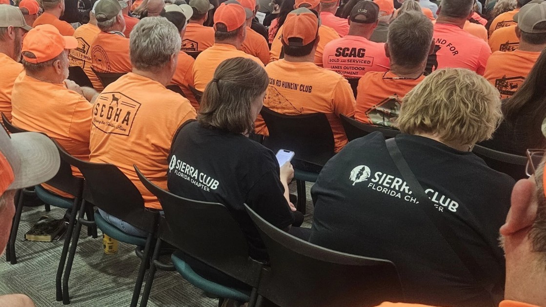 De outra forma, os comissários fizeram poucos comentários sobre a caçada durante uma reunião que atraiu uma multidão transbordada para o Instituto de Segurança Pública da Flórida na comunidade de Havana do Condado de Gadsden. Os apoiadores de caça usavam camisas laranja, enquanto os oponentes ostentavam preto.