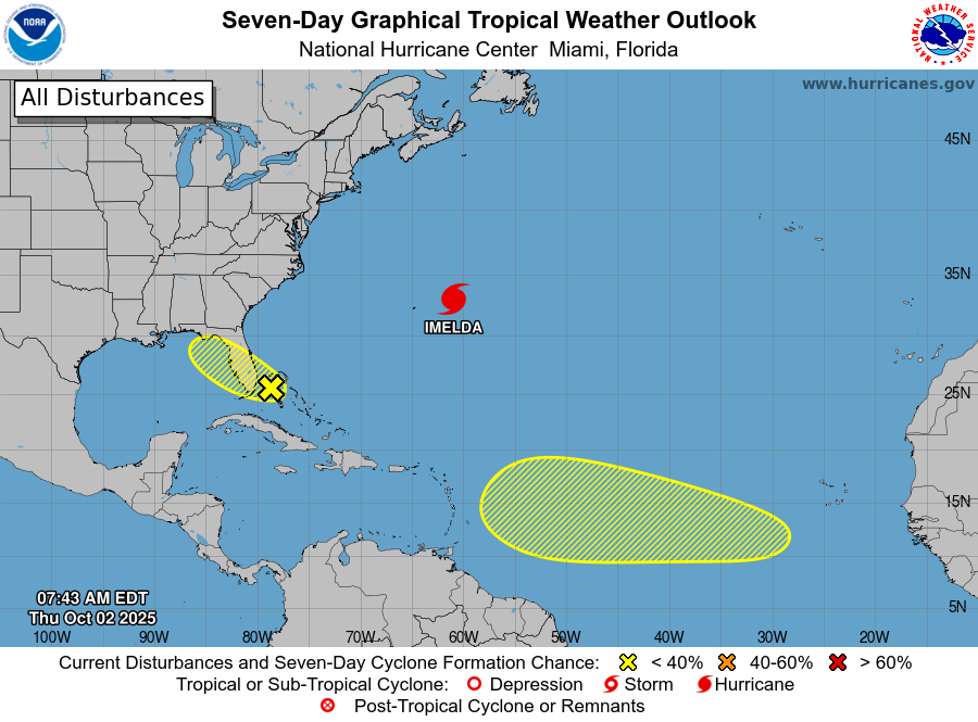 Aqueles no estado do sol estão assistindo a uma área de baixa pressão que pode se formar ao longo de um limite frontal remanescente perto das Bahamas do noroeste e do sul da Flórida nos próximos dias.